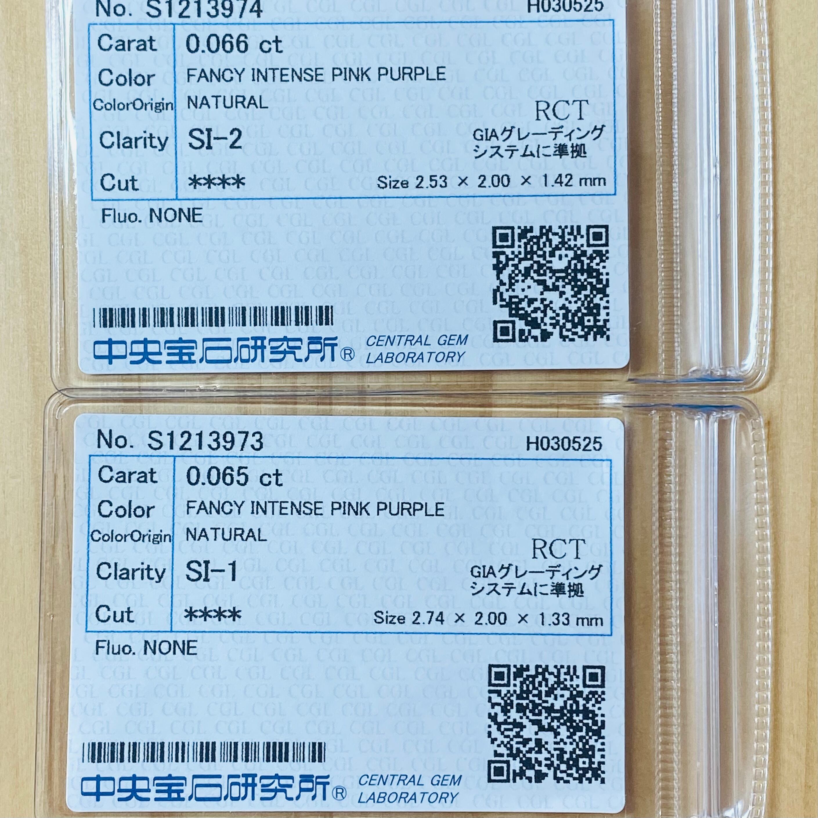 FANCY INTENSE PINK PURPLE 0.065ct/0.066ct RCT/RT3162/CGL