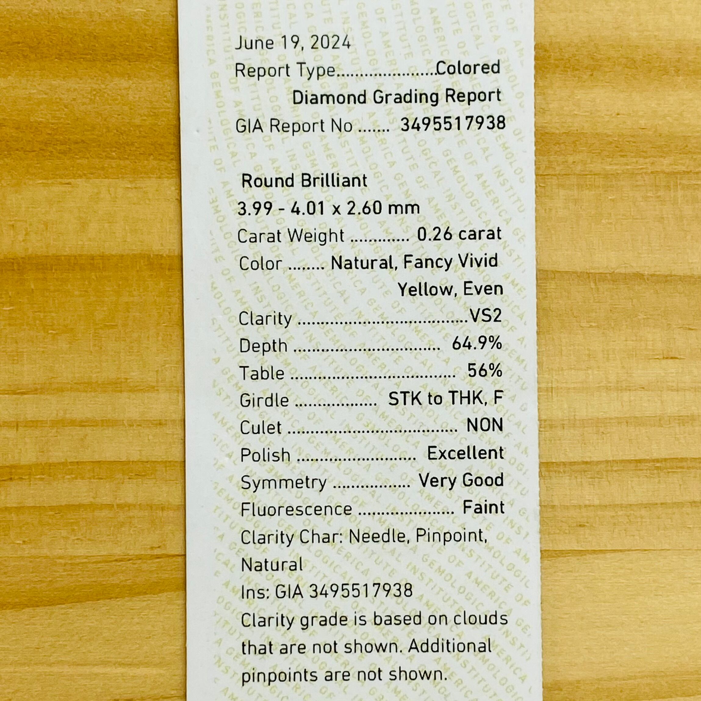 FANCY VIVID YELLOW 0.26ct RD/RT3268/GIA