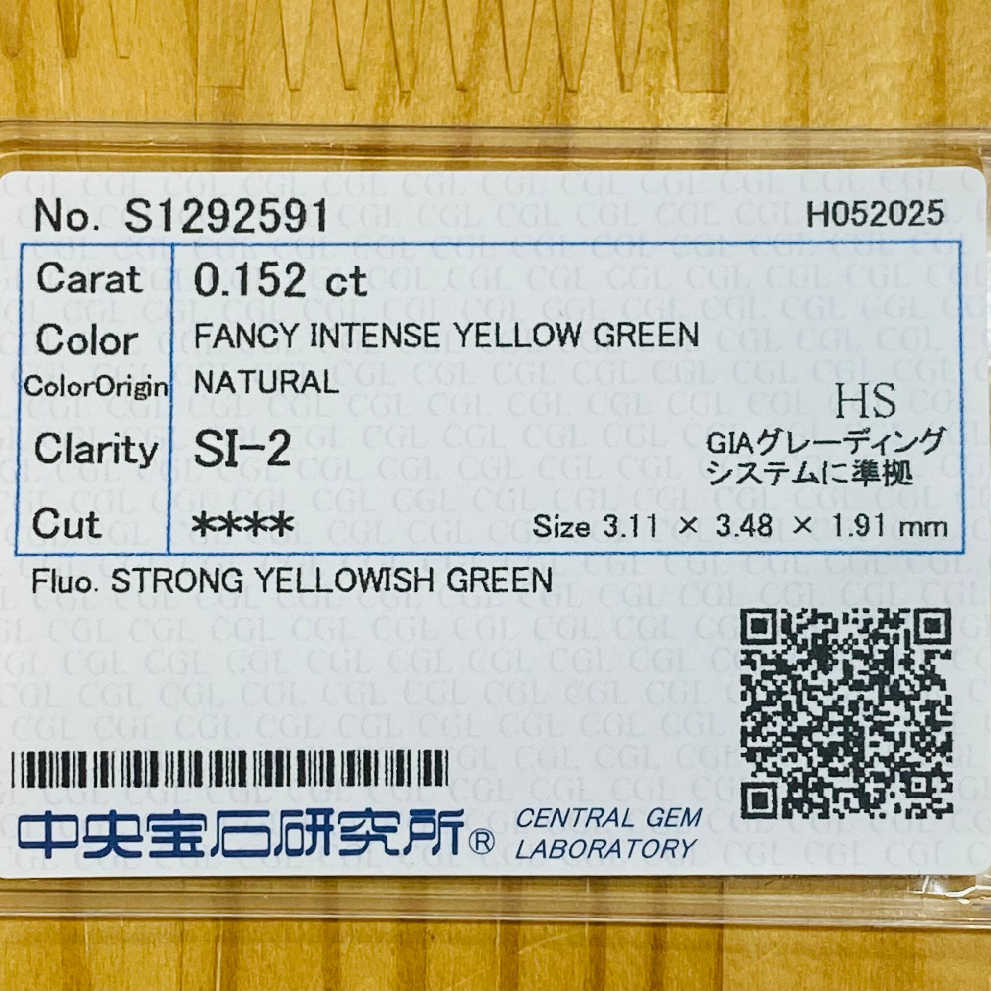 カラー:FANCY INTENSE YELLOW GREEN