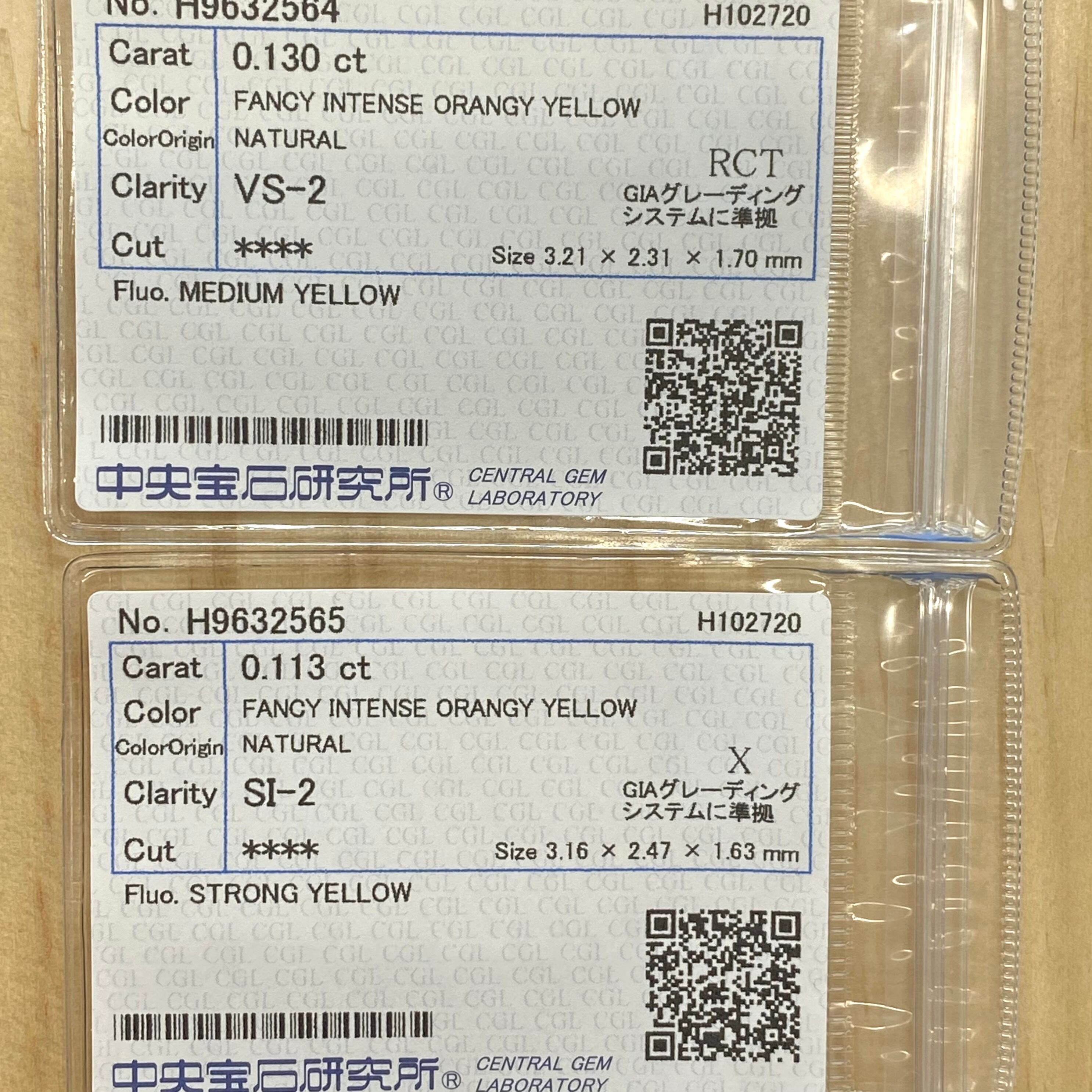 FANCY INTENSE ORANGY YELLOW 0.130ct&0.113ct
