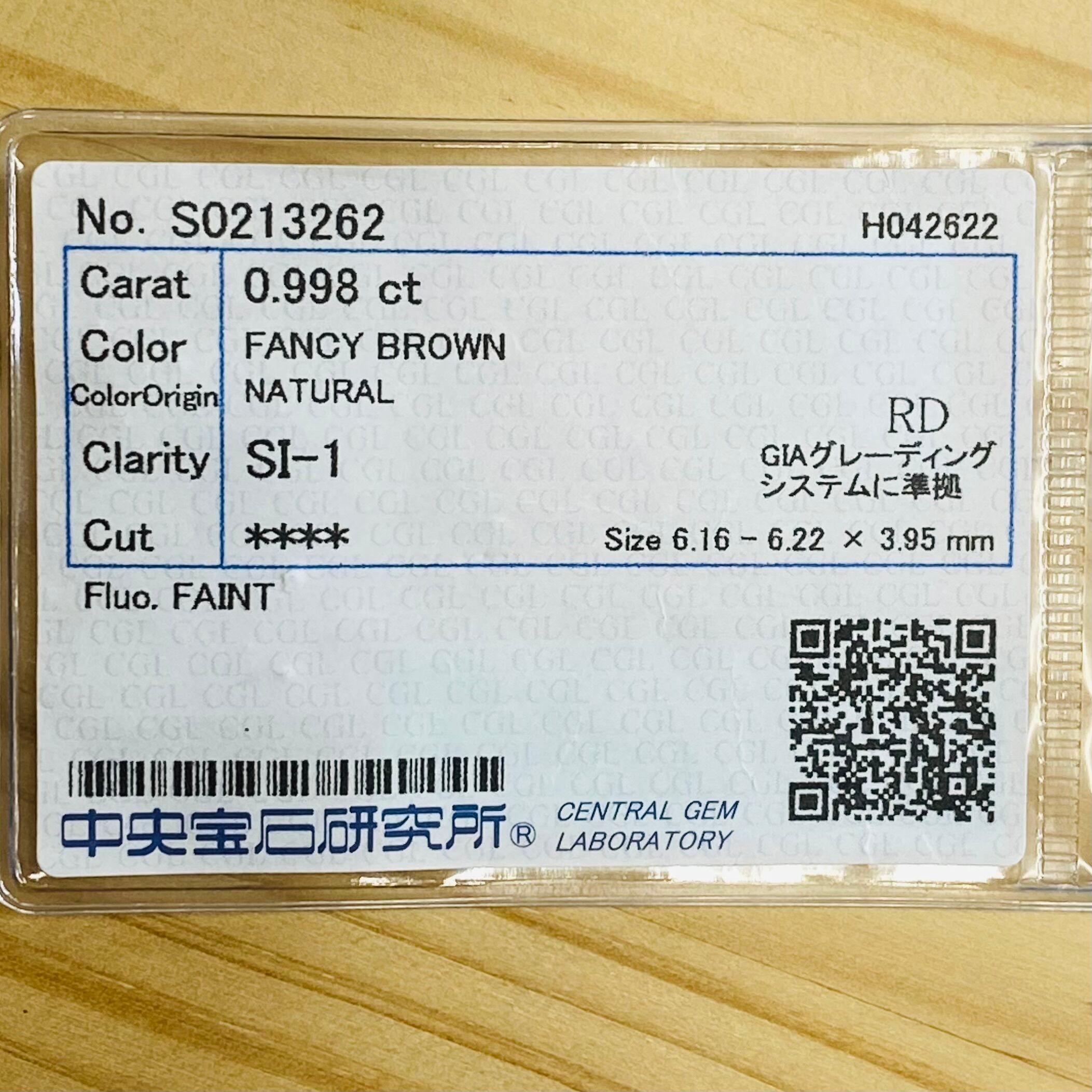 FANCY BROWN 0.998ct RD/RT1824/CGL