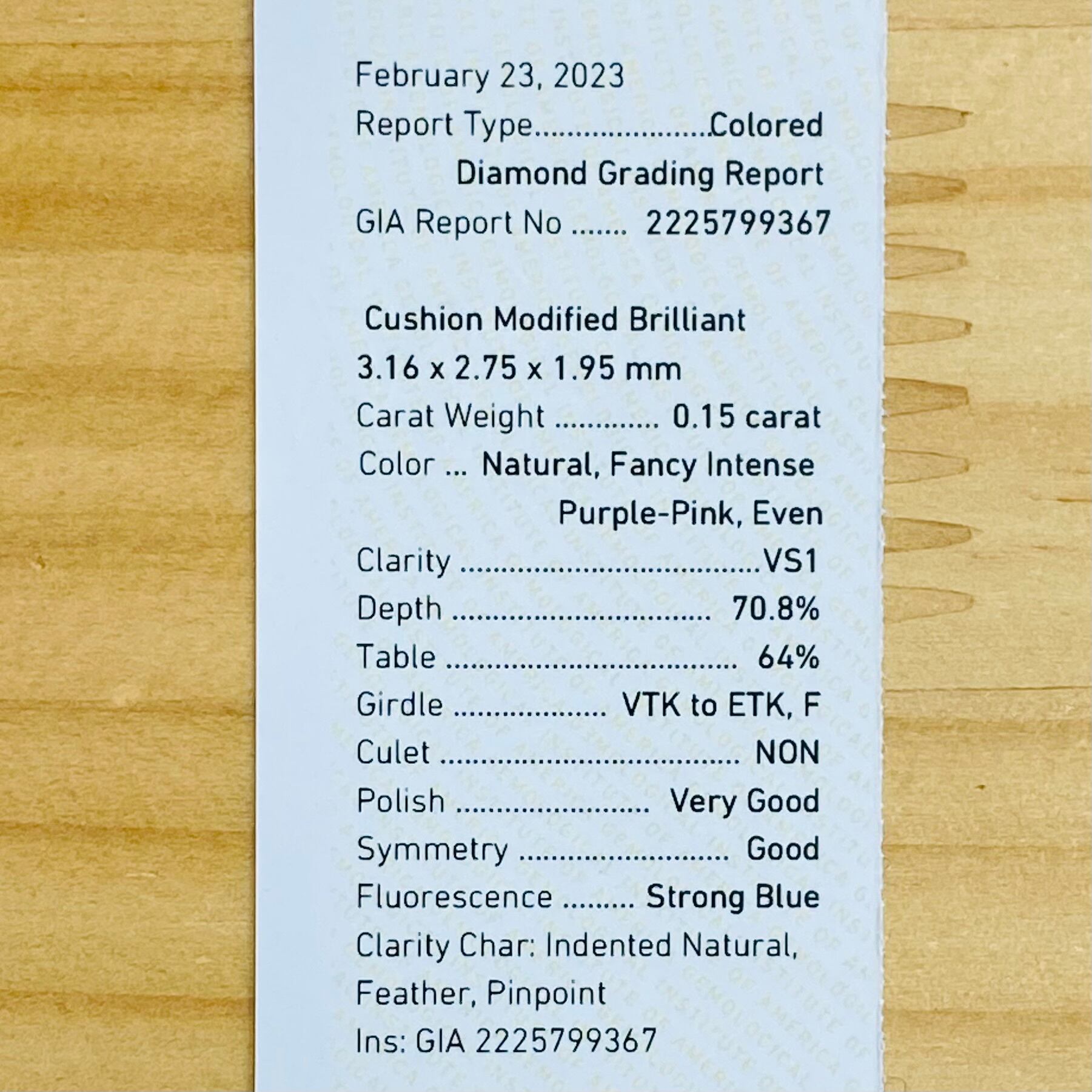 FANCY INTENSE PURPLE PINK 0.15ct/CU/RT2164/GIA