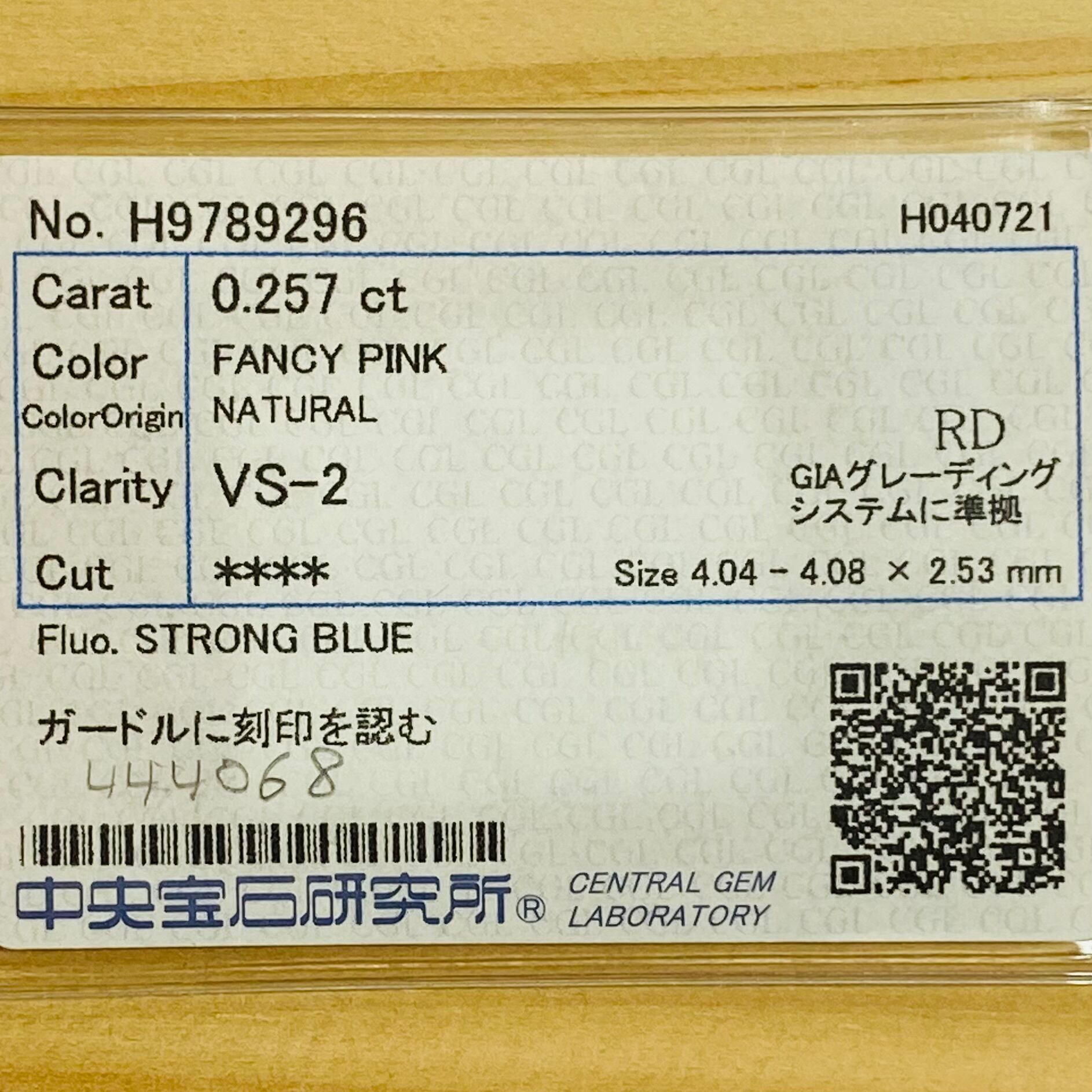 ARGYLE FANCY PINK 0.257ct RD/RT2479/ARGYLE/CGL