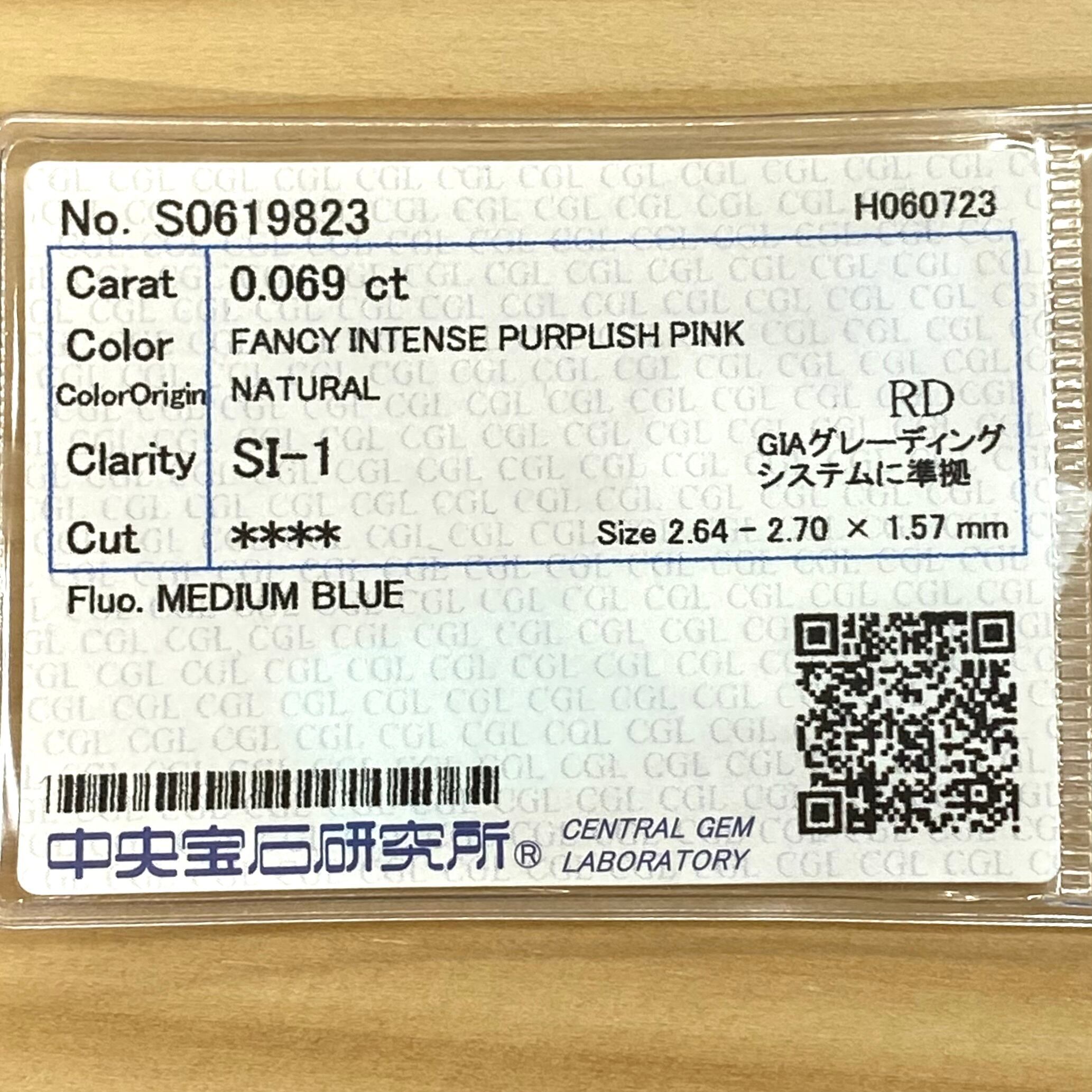 FANCY INTENSE PURPLISH PINK 0.069ct RD/RT2562/CGL