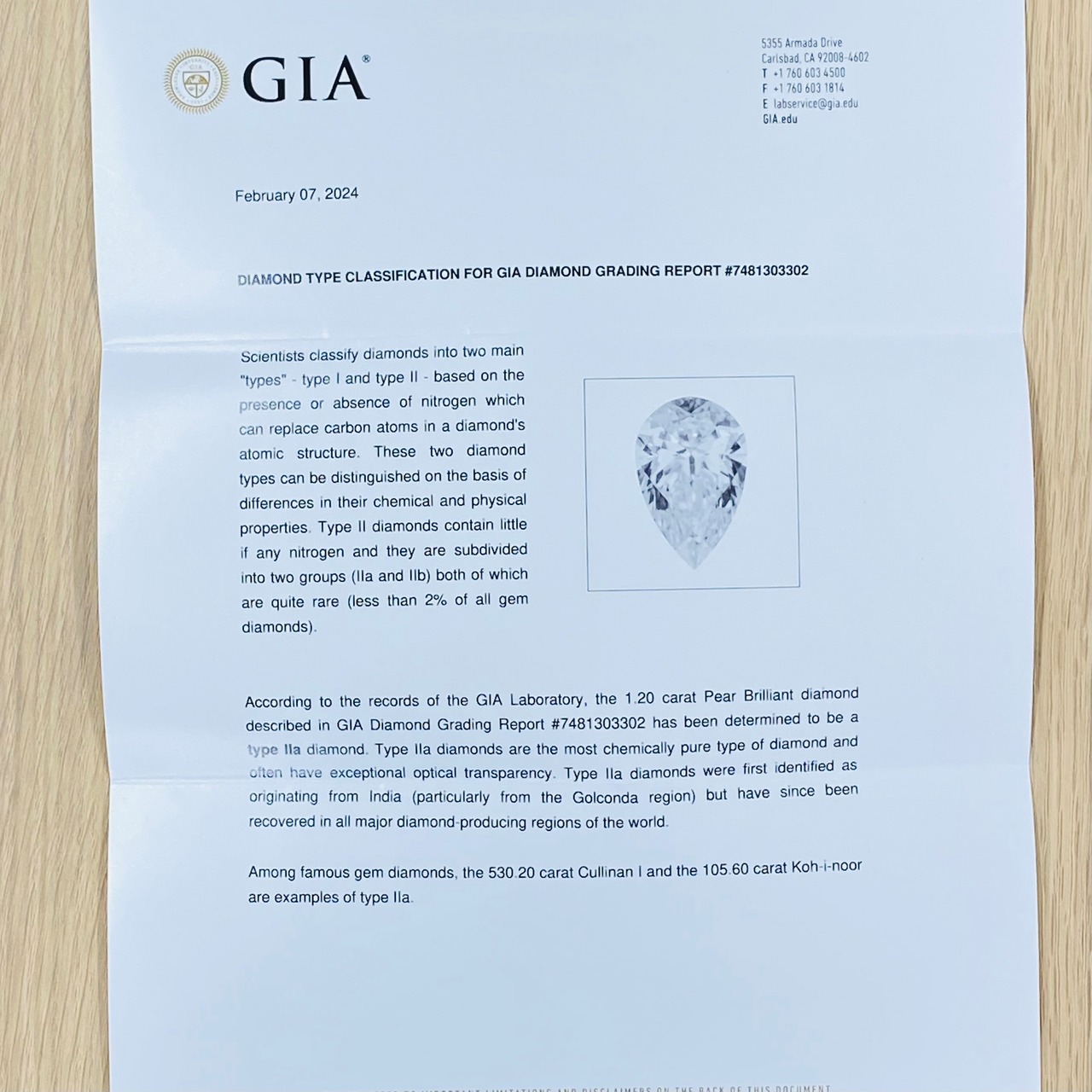 こちらは、GIAでタイプ2の証明書が付いております。